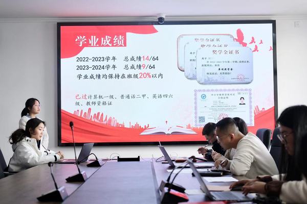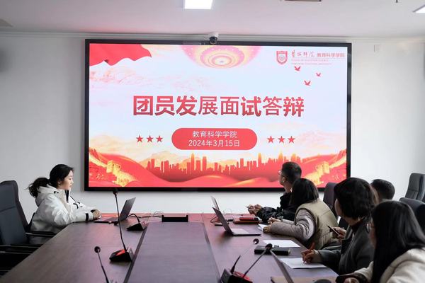 为深入学习贯彻习近平新时代中国特色社会主义思想和党的二十大精神、团的十九大精神,进一步引导广大青年肩负起时代赋予的重任,加强团组织队伍建设,选拔一批德才兼备、勤奋高效、团结向上的新团员队伍,充实公司共青团员的后备力量,加强入团发展对象对团组织的向心力,提高入团发展对象的个人素质和综合素养,永利23411集团严格按照《发展团员和团员教育管理工作实施办法》发展团员工作程序和校团委规定要严 格遵从发展团员工作的“十步骤、三公示、六必须”流程规范,于2024年3月15日在通榆校区主楼会议室开展“2024年上半年新发展团员面试”。本次面试由教育科学公司党委副书记海英老师和全体辅导员老师担任本期新发展团员面试的面试官。面试共分为 PPT 个人简述与提问答辩两个环节。