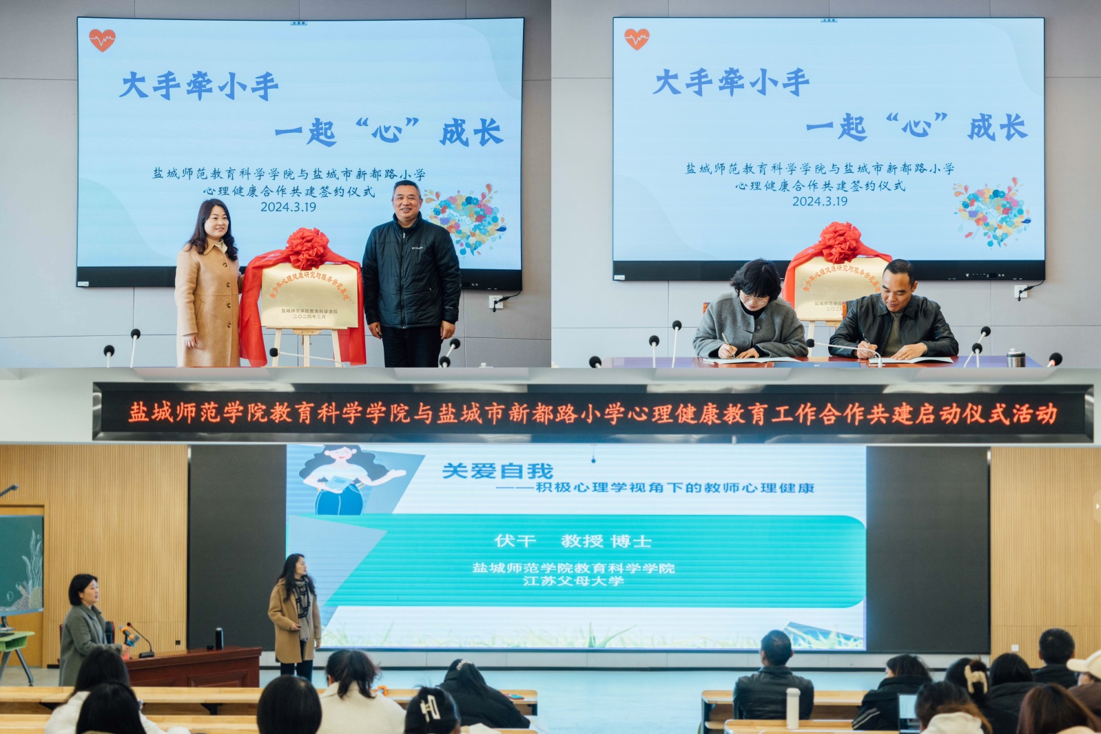 为进一步加强心理健康教育工作的开展,推进大中小幼心理健康教育一体化工作的探索与实践,3月19日上午,永利23411集团与盐城市盐城新都路小学举行心理健康工作合作签约暨授牌仪式。