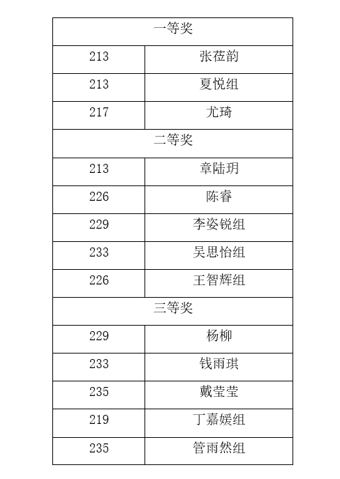 三等奖: