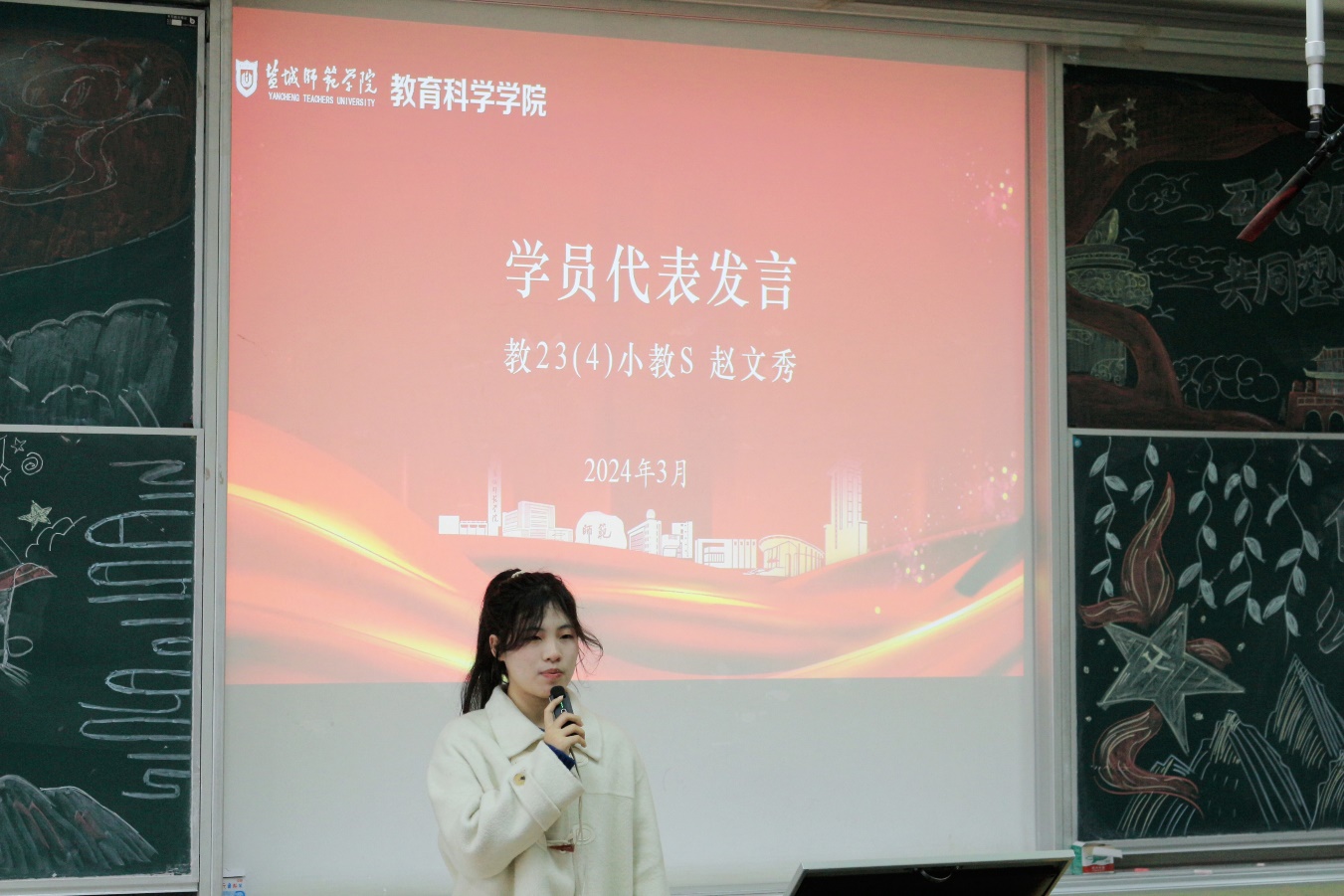 教23(4)班赵文秀代表全体学员表态,一定会做到学有所思、学有所获、学有所成,发挥好员工群体中的“领头羊”作用。