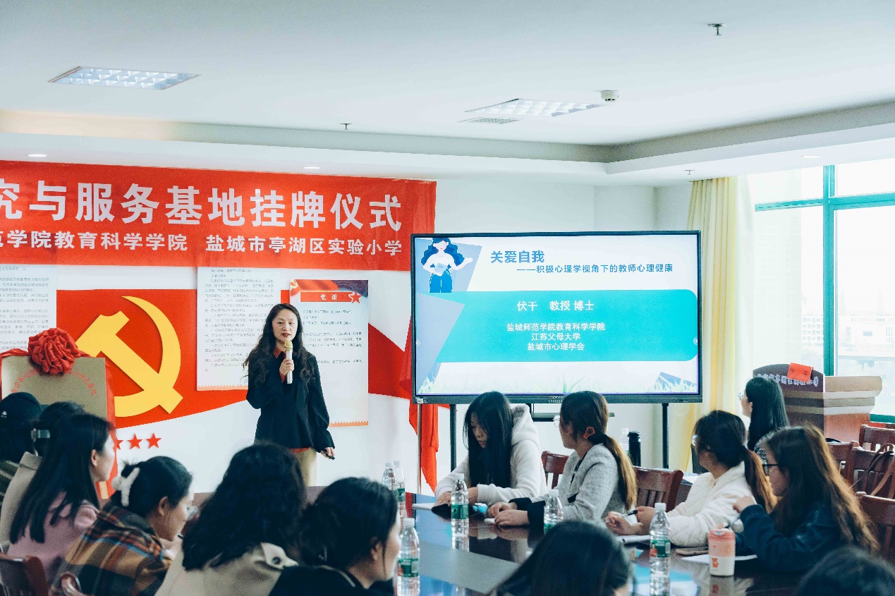 应亭湖区实验小学邀请,4月11日下午,盐城市心理学会会长伏干教授走进亭湖区实验小学开展《关爱自我——积极心理学视角下的教师心理健康》专题讲座。