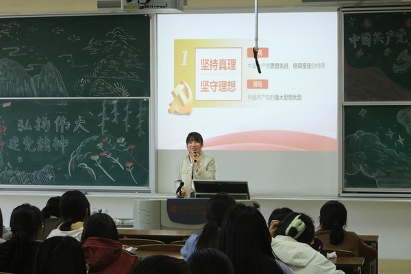 潘虹从“伟大建党精神的具体内涵”“伟大建党精神的重要意义”“当今社会如何弘扬伟大建党精神”三方面出发,深入浅出地引导同学们认识伟大建党精神的重要性。“坚持真理、坚守理想,践行初心、担当使命,不怕牺牲、英勇斗争,对党忠诚、不负人民”的伟大建党精神是中国共产党理想信念的根本标识,是中国共产党的精神之源,激励着一代又一代共产党人为党的事业奋斗终身,她表示,希望全体积极分子能深入理解其中蕴含的理论真理、价值取向、实践伟力。