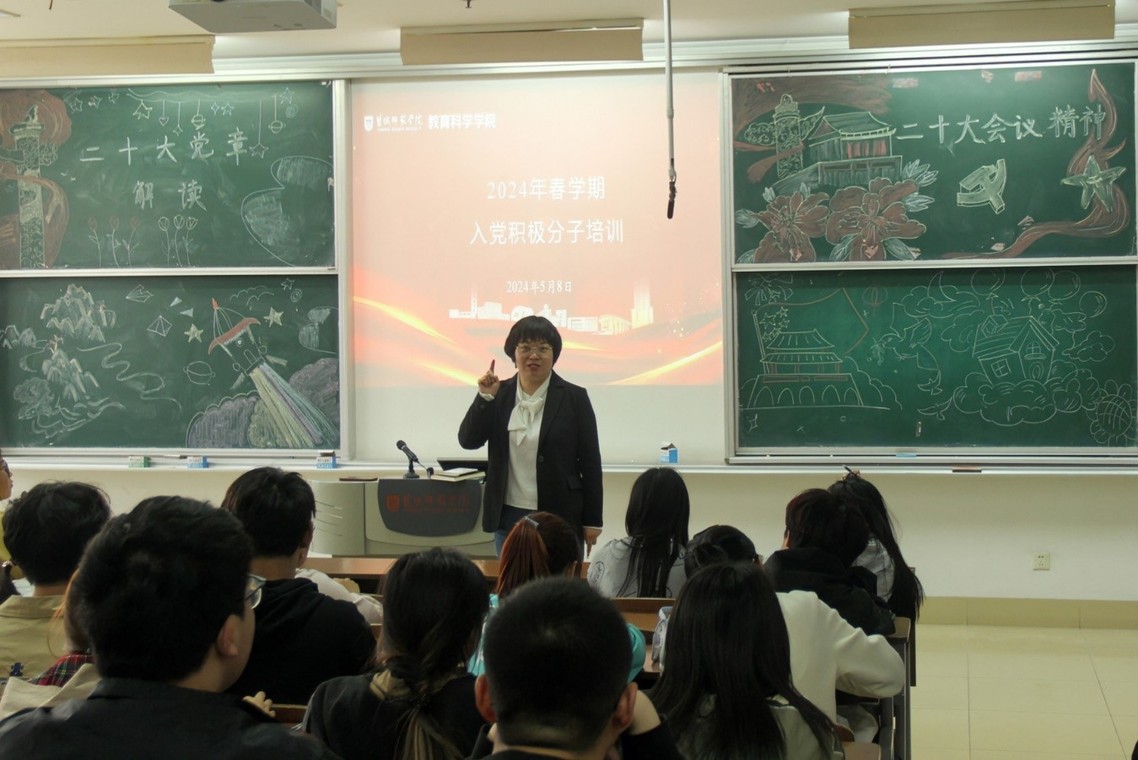 为深入学习贯彻党的二十大精神,提高入党积极分子的思想政治素质,5月8日下午3点,永利23411集团在主楼B304开展了2024年春学期第七次党课培训。本次党课由教育科学公司党委副书记海英主讲。