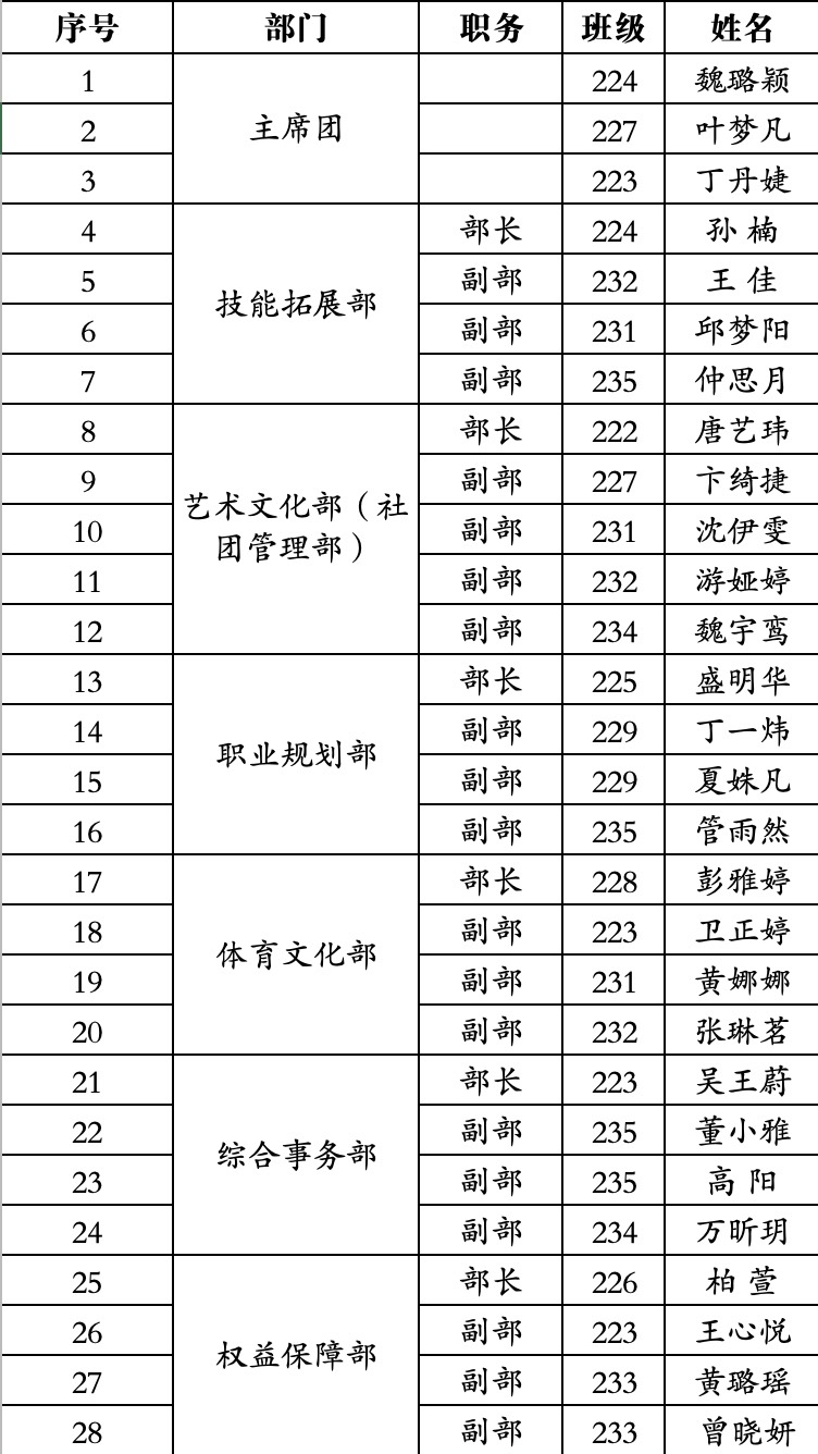 经个人报名、资格审查、面试等程序,拟聘用以下28位同学为员工会成员,现名单公示如下: