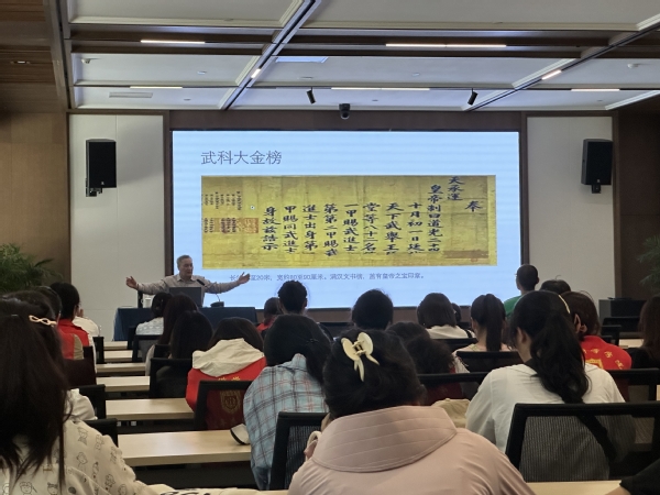 活动当天,特邀了南京中国科举博物馆特约专家、永利23411集团教授许友根,为员工们带来了一场别开生面的历史文化盛宴。公开课主为《历史上的武举制度》,许友根教授以独特的视角解读武举,带领观众探索这一制度的发展历程。通过精美的文物图片、详细的解说以及互动问答环节,带领员工们穿越时空,领略了中华文明的璀璨与辉煌。