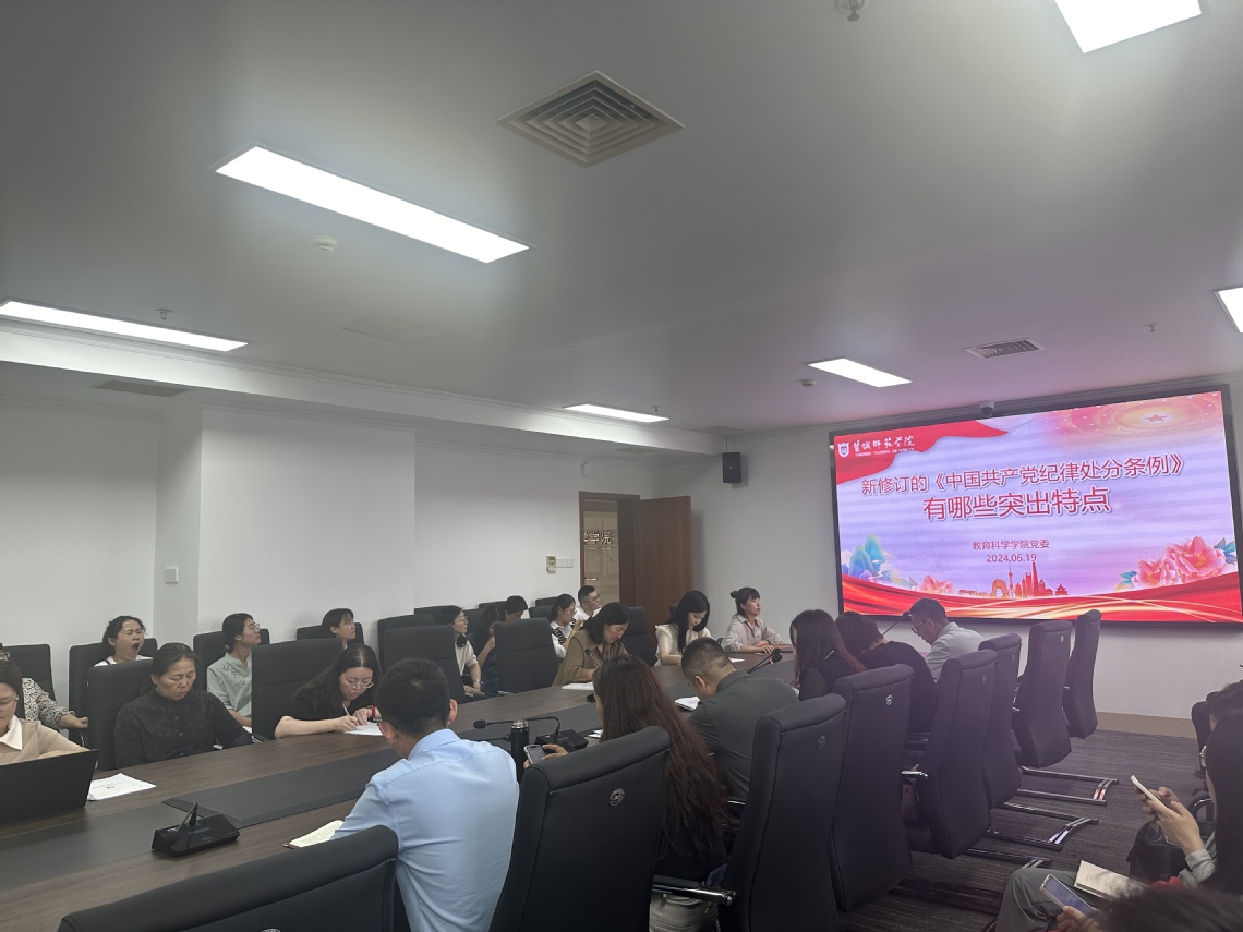 为进一步深入开展党纪学习教育,深入学习领会新修订的《中国共产党纪律处分条例》,6月19日下午,教育科学公司党委在主楼1108会议室举办党纪学习教育专题党课,公司党委书记杨日晨主讲。