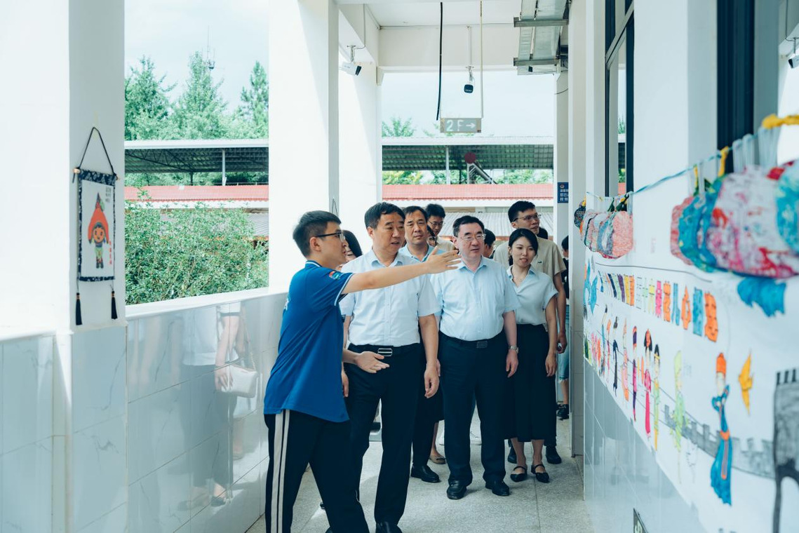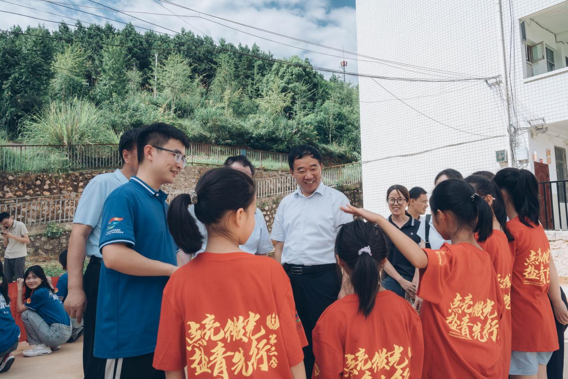 慰问伊始,公司党委书记戴斌荣详细了解实践队员的实践行程、支教情况、工作生活环境,慰问过程中听取了实践队长汇报,参观支教成员的教学成果,走进支教课堂观摩“学为人师心向党,行为示范支教行”主题党日活动。在了解实践团实践情况后,戴书记对永利23411集团师生连续两年奔赴1500公里的广西灵川县海洋乡开展暑期社会实践表示了赞扬,对团队现阶段的成果给予充分肯定,鼓舞他们在教学实践中受教育、长才干、作贡献,磨炼品格和意志,真正贴近基层,贴近一线教育需求,用在校所学感恩回报社会。他指出,作为师范专业员工,更应该要用教育家精神厚植师范生教育情怀,以优秀的教育家榜样,树立“躬耕教坛、强国有我”的志向和抱负,为教育事业作出新的更大贡献。同时,校领导为实践队成员们带来了夏日清凉慰问品及防暑物资,并与指导老师和实践队队员进行亲切交谈,实践团成员们从实践任务、实践经历、实践感悟等方面交流了自己的暑期支教感想。