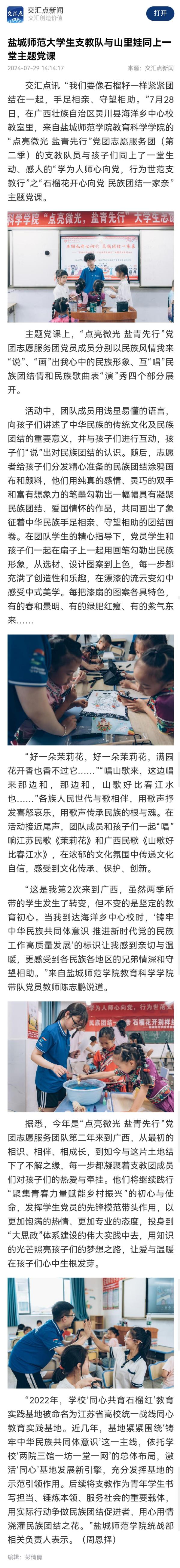 盐城:“点亮微光盐青先行”党团志愿服务队赴广西开展社会实践 - 国际在线移动版 (cri.cn)