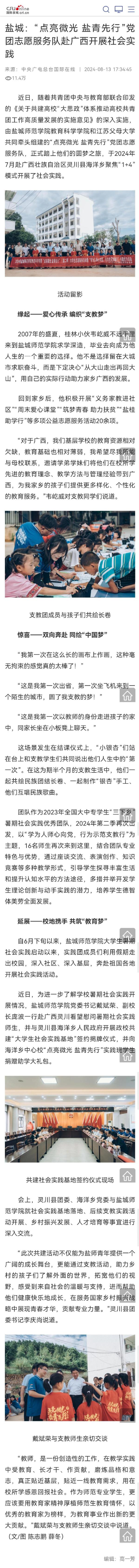 中央广电总台国际在线—盐城:“点亮微光盐青先行”党团志愿服务队赴广西开展社会实践