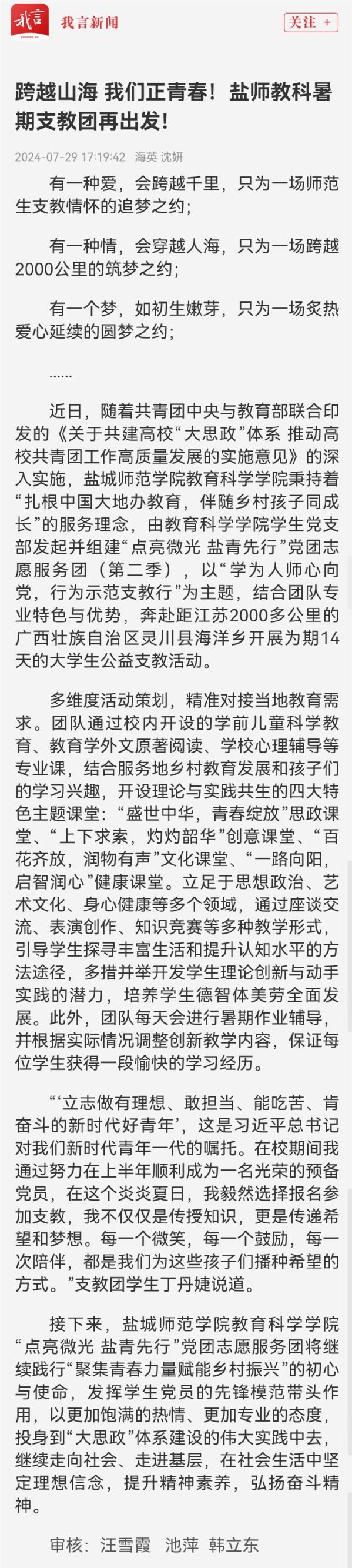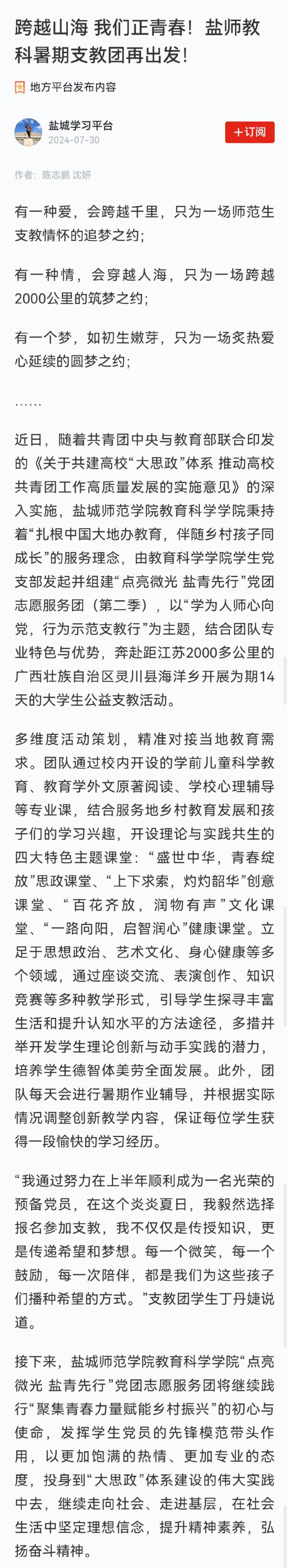 跨越山海我们正青春!盐师教科暑期支教团再出发! (xuexi.cn)