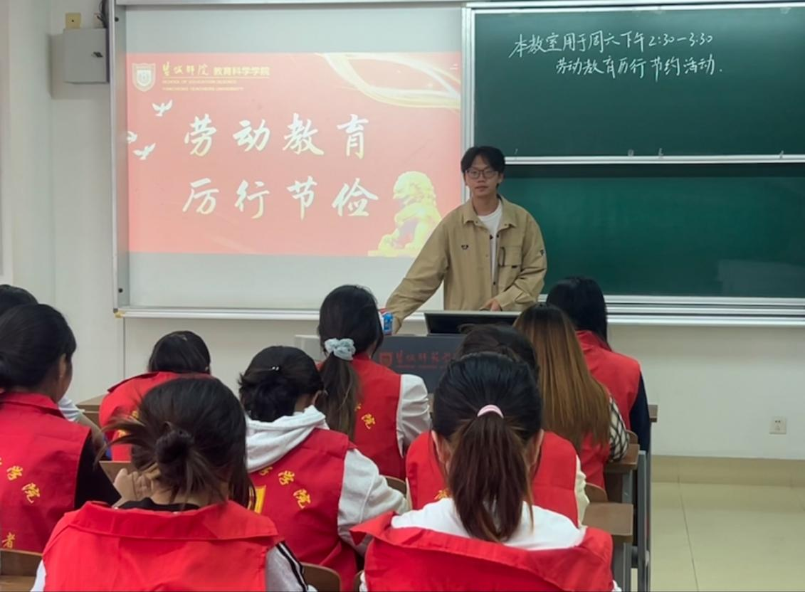 在新生刚刚步入大学校园之际,各班辅导员组织各班召开了“劳动教育、厉行节约”主题班会。在班会上,辅导员指出勤俭节约是中华民族的传统美德,将它传承下去是我们每一个人义不容辞的责任。新生们也对此展开了热烈的讨论,表达自己对于勤俭节约的看法。