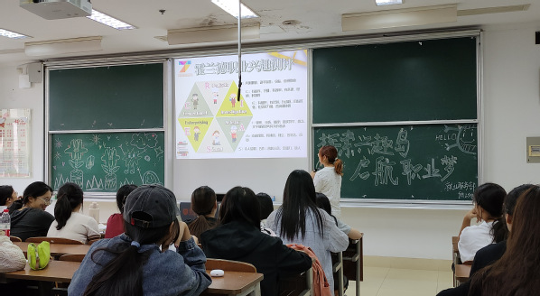 随后,紧接着,主持人详细讲解了霍兰德职业兴趣理论,这一理论如同一张职业导航地图,为同学们在茫茫职业海洋中指明了方向。通过讲解,同学们了解了不同兴趣类型与相应职业领域之间的紧密联系,对自身的职业兴趣有了更加清晰的认识。