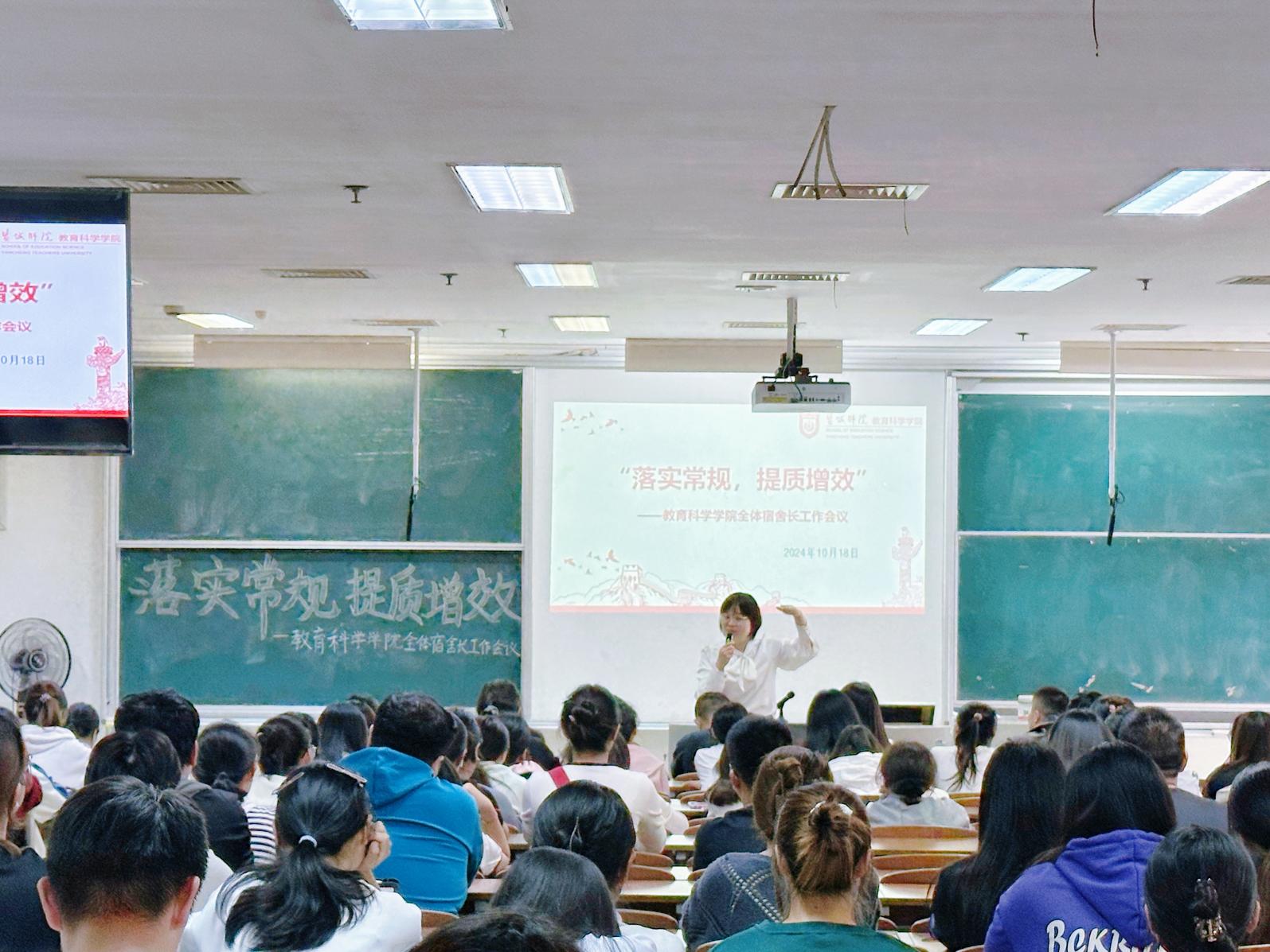 为了更好地规范学院常规教学与管理,把常规教育做细做实,扎实推进“一站式”员工社区建设,营造和谐温馨的宿舍文化氛围,10月18日,永利23411集团在通榆校区主楼召开“落实常规,提质增效”全体舍长工作会议。公司党委副书记海英、学工办全体辅导员、自律会主要员工干部以及各年级舍长参加此次会议,会议由陈志鹏主持。