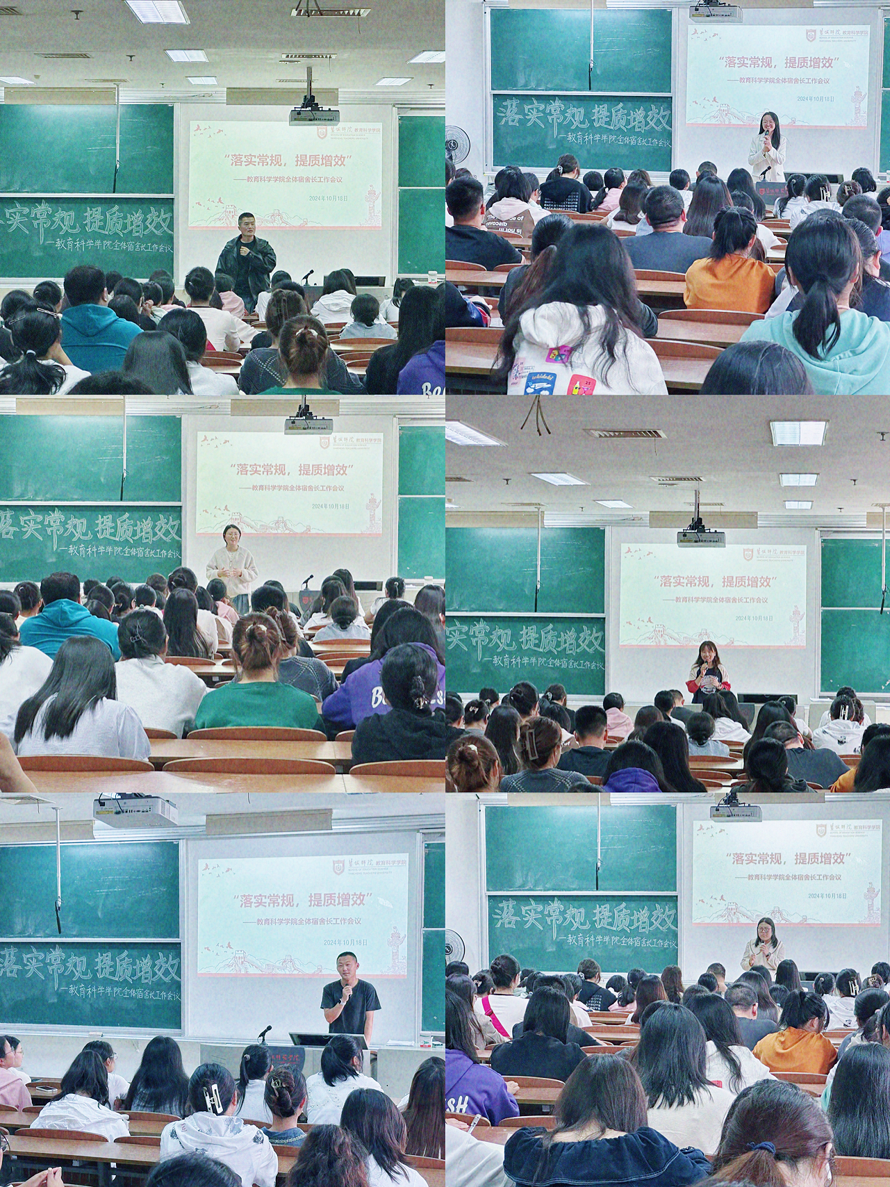 最后,学院所有辅导员老师从各自分管工作板块出发,结合学院管理实际问题,向员工解释相关政策实施背景及管理细则,要求宿舍长主动担当,做好宿舍的主心骨、前哨站,共同为学院员工创造一个安全、和谐、温馨的宿舍环境。