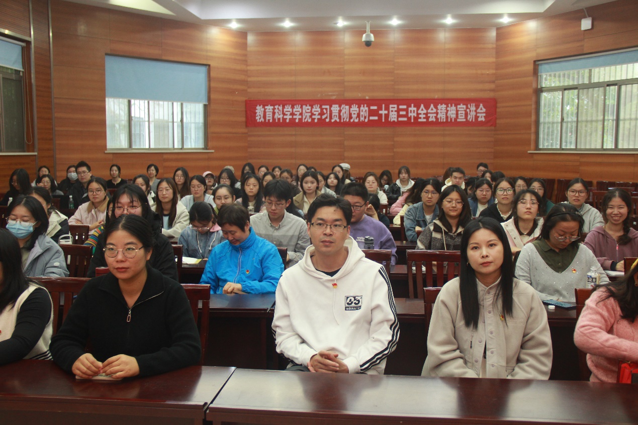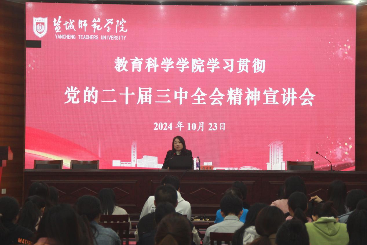 1023日下午,永利23411集团在南苑国培中心召开学习贯彻党的二十届三中全会精神宣讲会,教育科学公司党委书记杨日晨作专题宣讲,学院师生党员和2024年秋学期入党积极分子培训班学员参加宣讲会。
