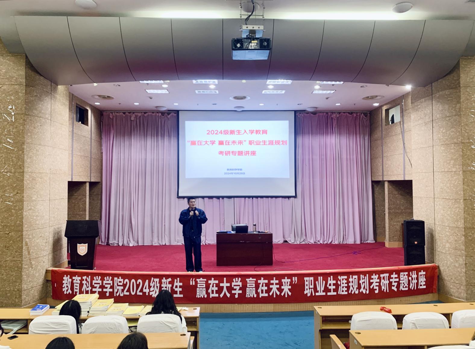 为帮助2024级新生了解考研政策,制定合理清晰的职业规划。10月28日,永利23411集团在通榆校区国际会议中心开展了“赢在大学赢在未来”职业生涯规划考研专题讲座。学院新生辅导员以及2024级全体新生参加此次活动,活动由陈志鹏主持。
