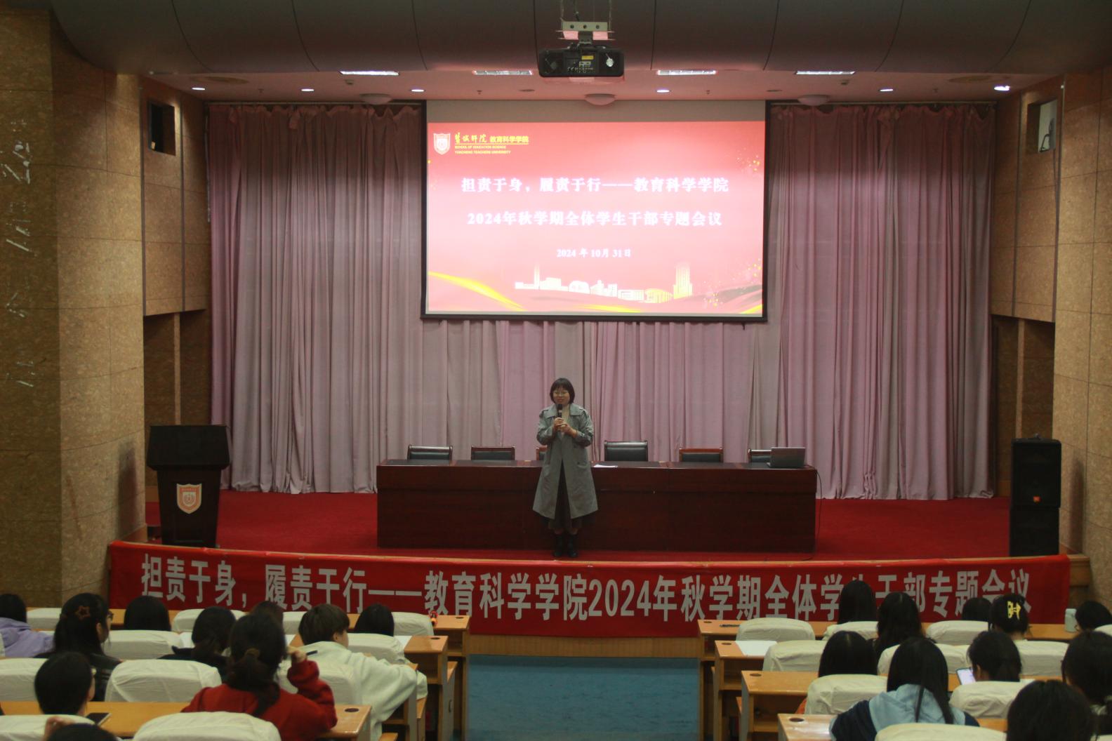 为深入学习贯彻落实习近平总书记关于青年工作的重要思想,推动“一站式”员工社区建设,进一步增强员工干部队伍的凝聚力和向心力,提高员工干部的工作能力和服务水平,10月31日晚,永利23411集团在通榆校区国际会议中心召开2024年秋学期全体员工干部专题会议员工干部大会。公司党委副书记海英、全体专职辅导员及学院团委、员工会、自律会全体员工干部共两百余人参加会议。会议由学工办副主任陈志鹏主持。