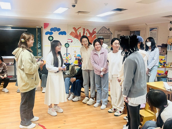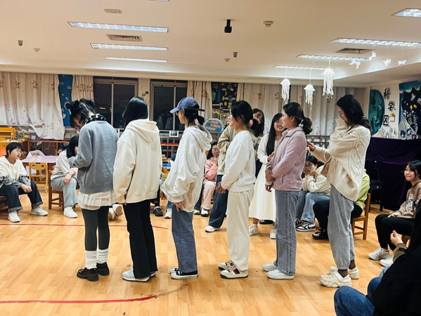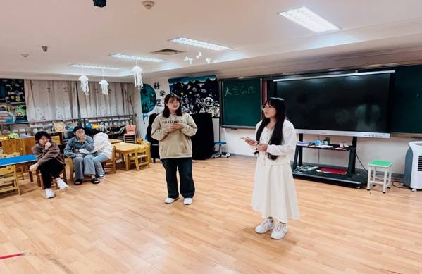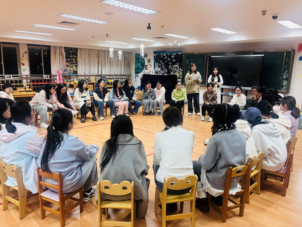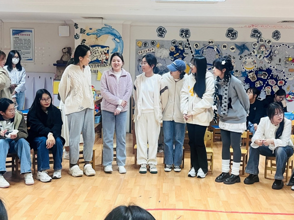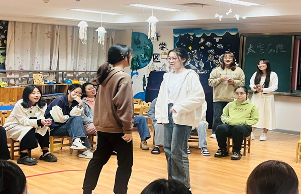 交流会在“加字游戏”中拉开序幕,同学们的积极参点燃了现场的气氛,在“加字游戏”中出错的同学接受了扮演医生看病的惩罚,而另一些同学也抽到互说方言的挑战,生动的肢体语言和夸张的表演引得同学们哄堂大笑;活动在“花开花落”游戏中达到高潮,所有人往后仰、弯腰、左右倾斜、蹲下,分别代表了花开、花落、春去、秋来、结果。现场此起彼伏波浪式的动作让每一个人都沉浸其中。最后交流会在“你画我猜”接力活动中落下帷幕,第一轮的简笔画比较简单,其中挤眉弄眼的惩罚小游戏也十分有趣,增添了不少乐趣。第二轮的挑战则更为复杂,随着时间的临近,同学们集体努力猜出了接力内容,活动圆满结束。