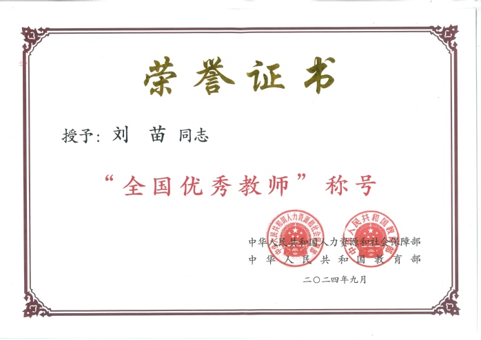 近年来,刘苗获得省教学大赛一等奖一次,省教学大赛二等奖一次,省教学大赛三等奖二次,市教学大赛一等奖三次。