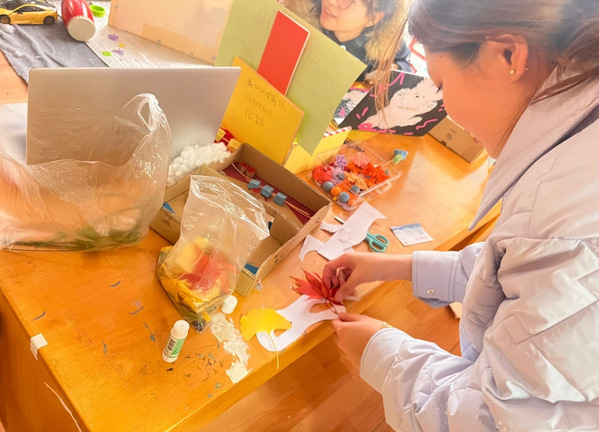 在“叶灵秘语,面具寻踪”活动中,该活动以制作树叶面具的方式,让员工感受自然的魅力。参与者用精心挑选的树叶装饰面具,在创作中发现生命的痕迹与自然的秘密,完成后进行作品展示,充满生命力的面具引来许多同学驻足欣赏。