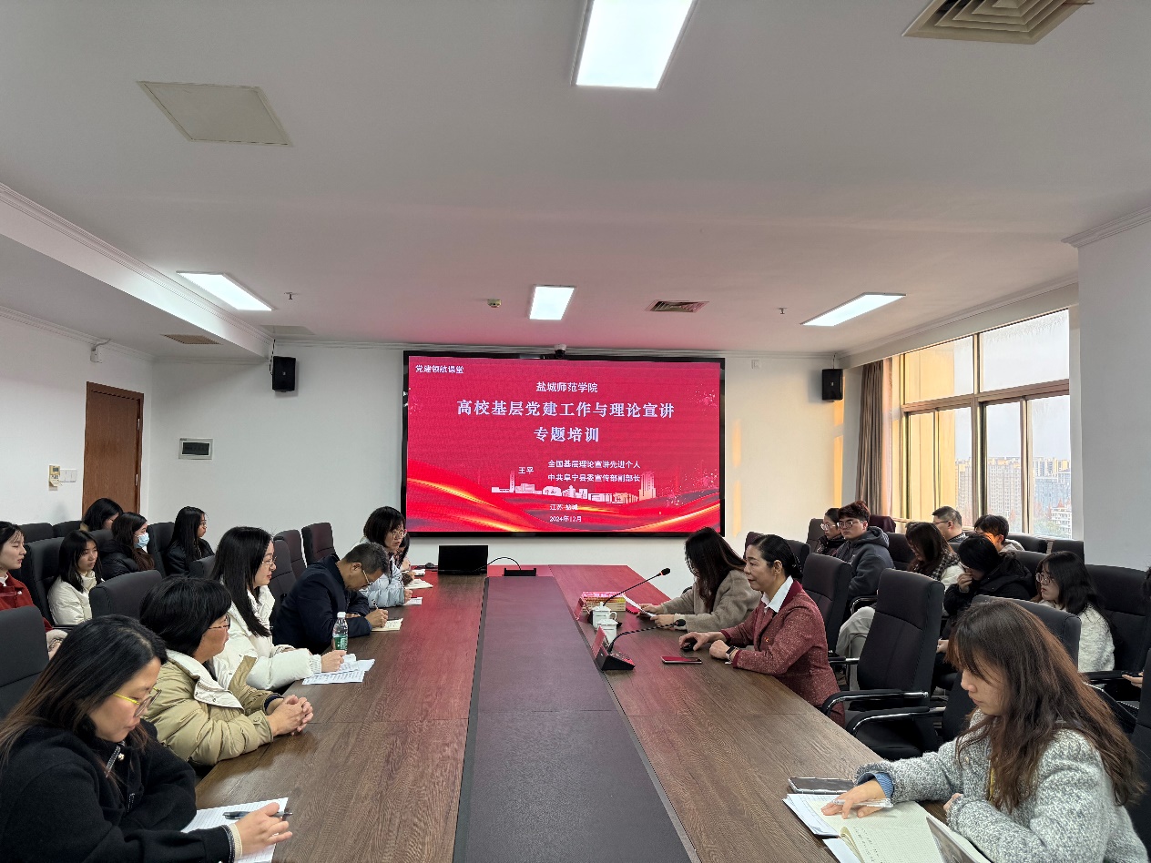 为进一步做好基层党建工作,切实提升党员师生的政治素质和业务能力,教育科学公司党委“党建领航课堂”于12月7日正式开班。全国基层理论宣讲先进个人、中共阜宁县委宣传部副部长王平受邀作高校基层党建工作与理论宣讲专题培训。本次培训由教育科学公司党委书记杨日晨主持,学院领导班子成员、党支部书记与党员师生50余人参加培训。