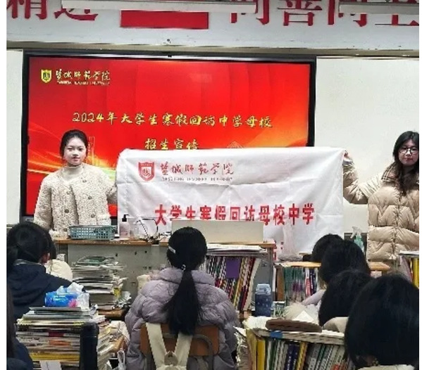 寒假期间,“筑梦盐师,回访母校”招生宣传实践团成员返回家乡,踏上了回访母校的旅程。他们怀着对母校的感激之情,走进南京、常州、连云港、南通四市的五所高中,通过生动的宣讲、真诚的交流,将盐师的风采与魅力传递给学弟学妹们。