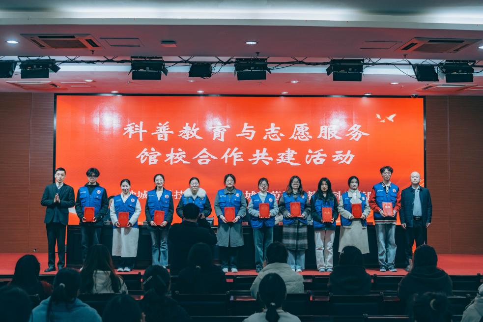 共建仪式上,刘成、王海洋为志愿者代表颁发聘书。徐钊和杨日晨共同签署了《科普教育与志愿服务协同创新基地合作协议》,邹苏豫和杨日晨为“科普教育与志愿服务协同创新基地”揭牌。