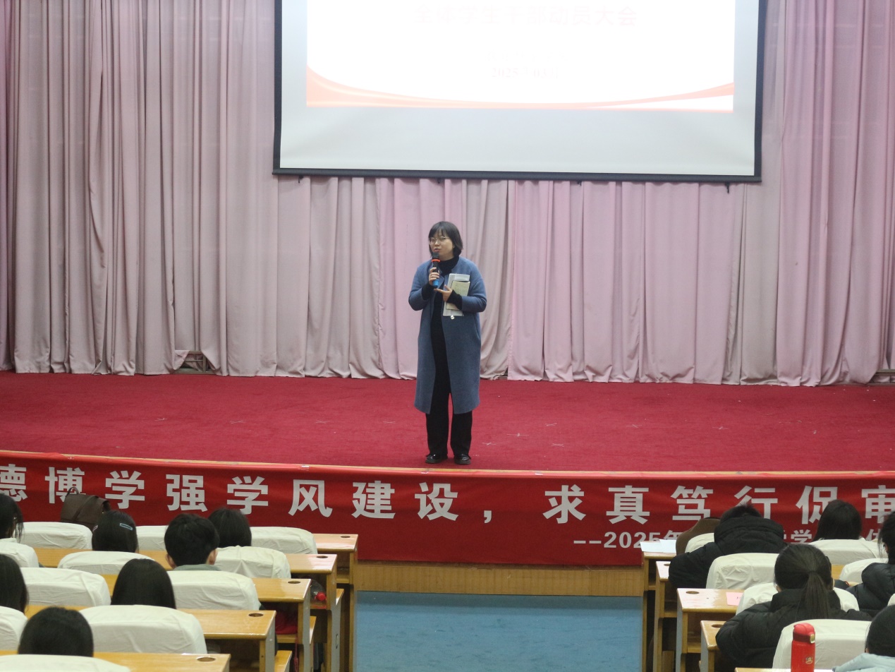会上,公司党委副书记海英系统阐释了学风建设与审核评估的内在逻辑关系,强调学风建设作为人才培养的核心工程,既是落实立德树人根本任务的重要抓手,更是提升学校办学质量的关键环节。随后,她对员工干部提出三点殷切期望:一是以身作则,争做学风建设排头兵,在课堂纪律、学术规范等方面发挥示范引领作用;二是善用新媒体矩阵,营造“人人重学风、班班创优良”的浓厚氛围;三是搭建沟通桥梁,建立信息“日收集、周汇总、月反馈”机制,做好师生间的信息枢纽,为教学质量提升贡献青春智慧。