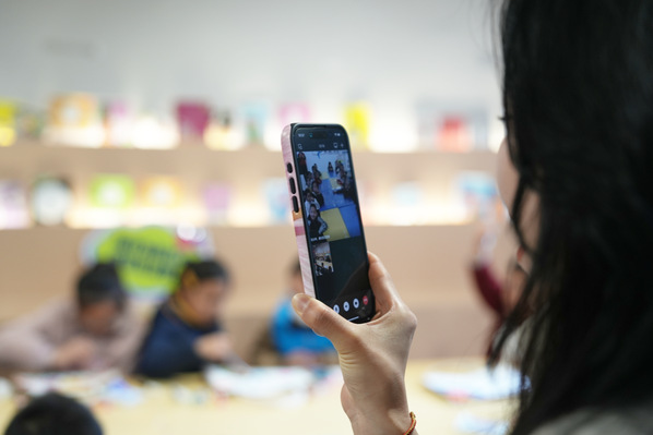 在这些充满创意的作品中,有一个孩子设计的帆布包尤为引人注目。他选择以石榴花为主题,用细腻的笔触和鲜艳的色彩,将石榴花绽放的绚烂景象完美地呈现在画布上。那石榴花儿不是一朵朵独立开放,而是三个一簇、两朵并蒂,悬挂在枝头,明艳如火。这一幅作品不仅展现了石榴花的美丽,更寓意着民族团结的美好愿景,正如习近平总书记所说:“我们要像石榴籽一样,紧紧的团结在一起。”各族人民心手相连,共同谱写着和谐发展的美好篇章。这一刻,视频连线的两端,都沉浸在这份美好的祝愿之中。