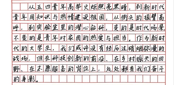 红色笔墨承薪火,思辨求真传精神。永利23411集团开展“五四薪火传,家国心中燃——新时代青年的责任与情怀”主题征文活动,通过文字创作、历史思辨、现实观照等多元形式深化理论学习,引导青年在历史纵深与时代前沿的对话中锚定信仰坐标,在文字书写与精神共鸣的融合中淬炼责任,以思辨精神传承革命薪火。