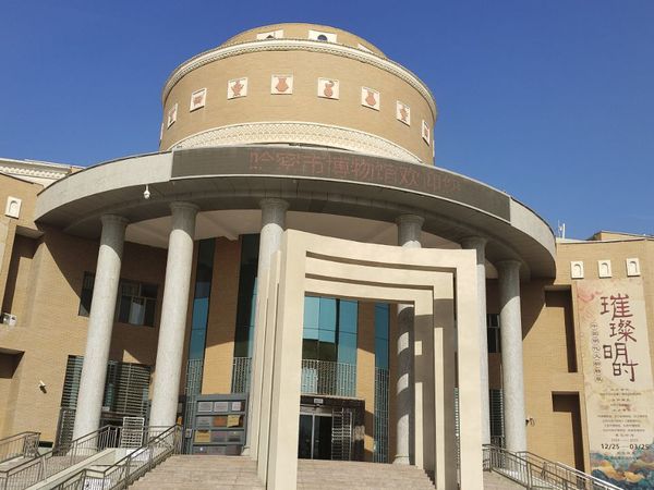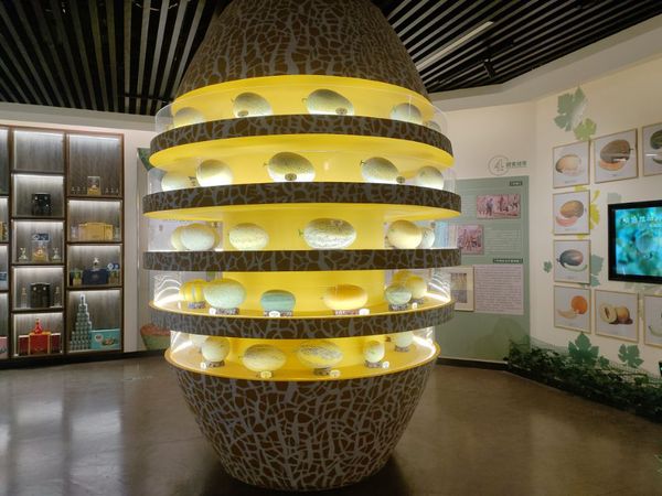 哈密市博物馆凭借独特建筑风格与丰富展品,给大家留下了深刻印象。博物馆分两部分,其一以非物质文化遗产为主题,展示哈密饮食、舞蹈及哈密瓜文化。哈密瓜作为重要农产品,其种植历史、品种特点及与当地生活的紧密联系在展览中生动呈现。另一部分以“飞向白垩纪”为主题,展出大量翼龙化石、古生物化石和恐龙模型,凸显哈密独特地质历史与古生物资源。