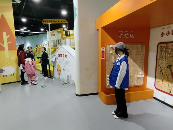 活动期间,志愿者们统一身着蓝色马甲,在儿童馆入口,志愿者们耐心疏导人流,协助家长快速入场;在互动体验区,他们俯身示范操作流程,用生动语言讲解科学原理;在展板区,则通过趣味问答激发孩子们的探索兴趣。针对低龄儿童易走散的特点,志愿者们加强巡逻,确保参观安全有序。