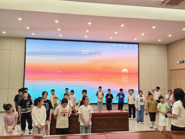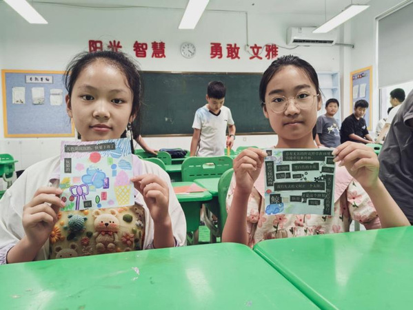 在大庆路实验学校,实践团队开设国学课程,志愿者通过“甲骨文探秘”和“经典诵读”活动,带领员工感受汉字演变,培养文化自信。课程以互动形式展现传统文化魅力,校园书香满溢。在盐城小学,实践团队开设融合多元文化的暑期课程,开设藏族舞蹈、英语配音和主题辩论等活动,提升员工艺术素养、语言能力和批判性思维,拓展国际视野。在建军路小学,实践团队开设科学启蒙课程,通过“二十四点”思维游戏、“纸杯投影仪”手工等活动,激发员工创新思维和科学兴趣。