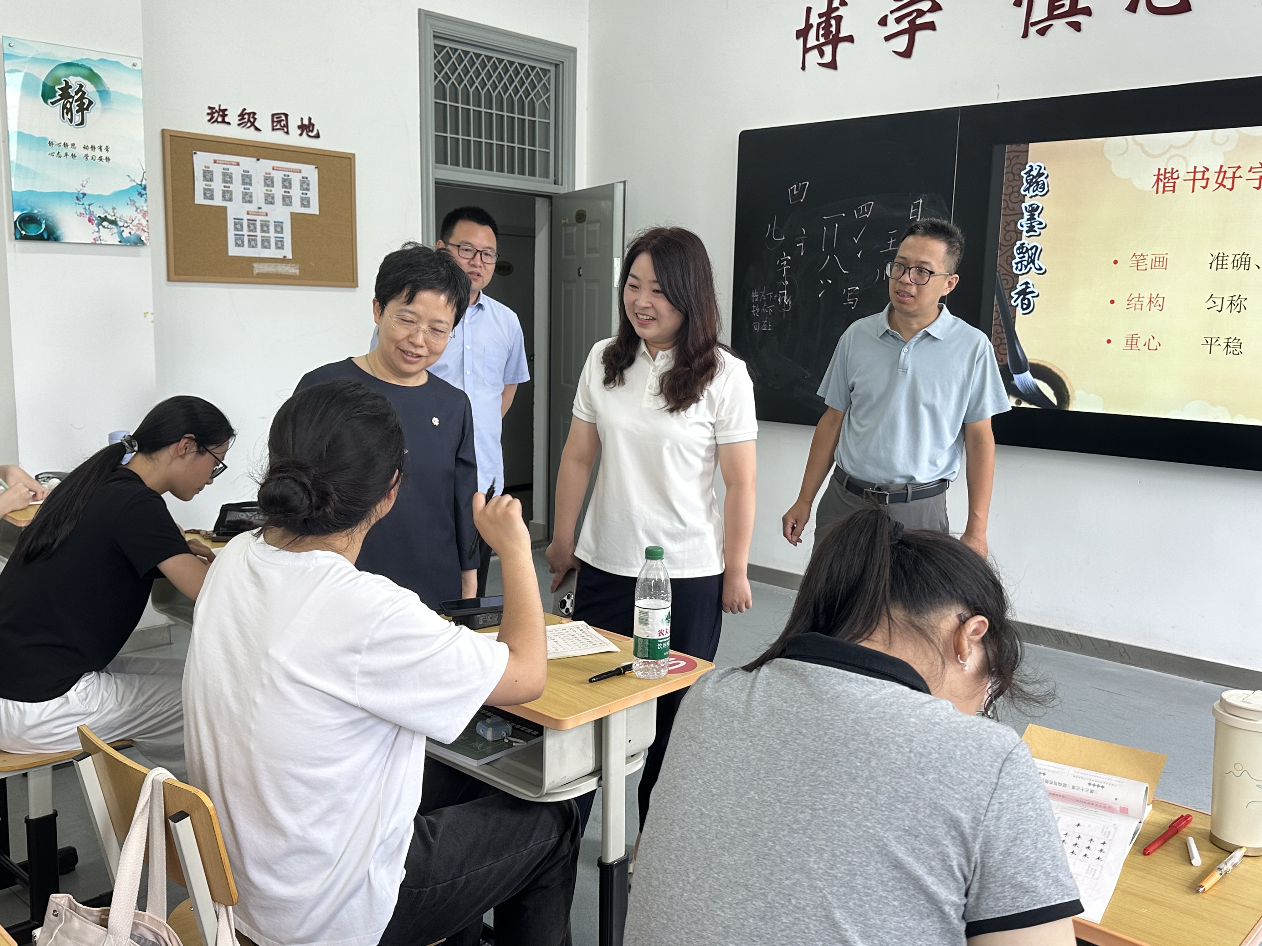 7月18日上午,公司党委书记张玉勤,党委常委、副董事长汤克明,党委常委、副董事长毕凤珊,党委办公室、经理办公室、考核办公室主任张晓东,教务处副处长姜超一行莅临公司,亲切看望备战省师范生教学基本功大赛的师生团队。