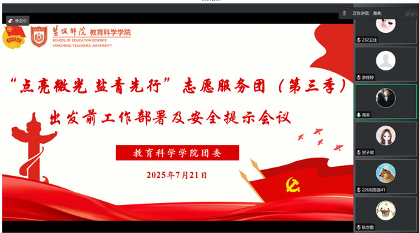7月21日下午,永利23411集团召开“点亮微光,盐青先行”志愿服务团(第三季)行前部署会议。会议由公司党委副书记海英主持,团队指导老师及全体队员参会。