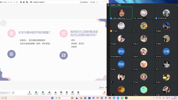 分享的最后,黄颖由衷表达了对在盐师四年时光以及老师、同学、学长学姐的感恩,感谢老师们专业的指导与支持,并鼓励学弟学妹把感激与收获转化为行动,用踏实与进取打开大学的更多可能。