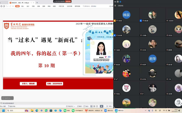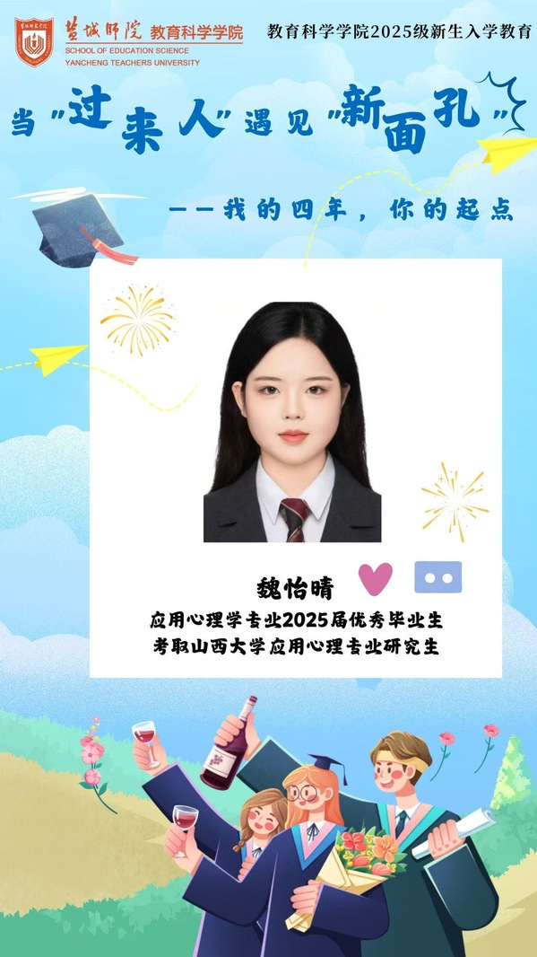 为帮助新生迅速适应老员工活,找寻职业生涯的规划方向,8月29日晚,永利23411集团邀请2025届应用心理学专业2025届优秀毕业生魏怡晴作为“当‘过来人’遇见‘新面孔’:我的四年,你的起点”主题分享会第10期分享者。大学四年,魏怡晴从初入校园时探索方向,到逐步坚定考研目标,凭借对心理学的热忱与不懈的努力,最终成功考取山西大学应用心理专业研究生,在追逐梦想的道路上,走出了属于自己的精彩成长线。