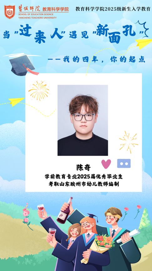 从初入校园的青涩,到逐步积累的成长,再到成功上岸的喜悦,陈奇用两年时光走出了属于自己的逐梦之路。如今,他已经站在学前教育的讲台上,开始新的篇章。愿每一位即将启程的新生,都能在大学四年里找到属于自己的节奏,用努力与坚持书写青春的答卷。