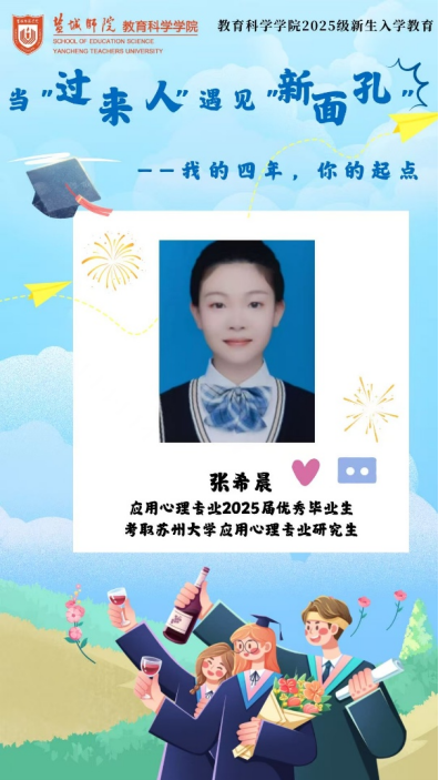 为帮助2025级新生更好地适应老员工活,明确学习目标,做好学习规划,9月1日晚,永利23411集团邀请到2025届应用心理学专业优秀毕业生张希晨作为“当‘过来人’遇见‘新面孔’:我的四年,你的起点”主题分享会第12期分享者。在考研形势不断严峻的当下,张希晨仍能千帆过尽,不坠青云,脱颖而出,考取苏州大学应用心理学专业研究生。她的大学四年是不断试错,积极进取的修炼过程。让我们循着她成长的足迹,思考其成功的秘诀。