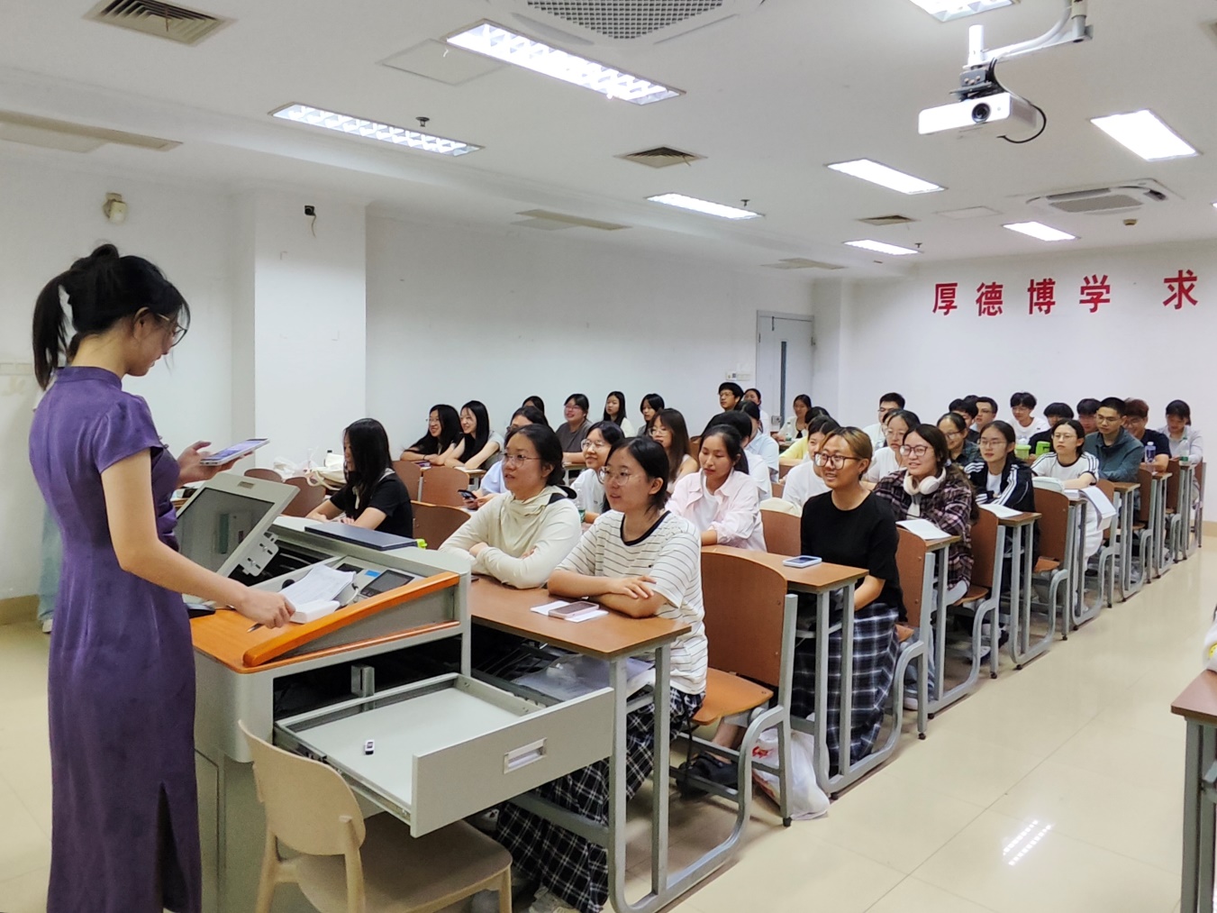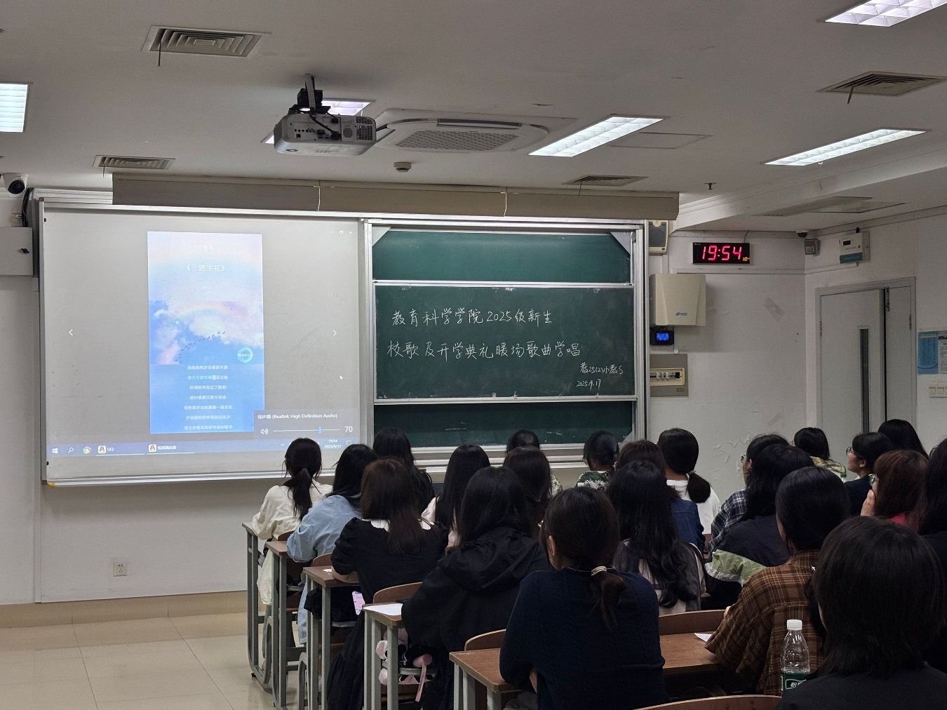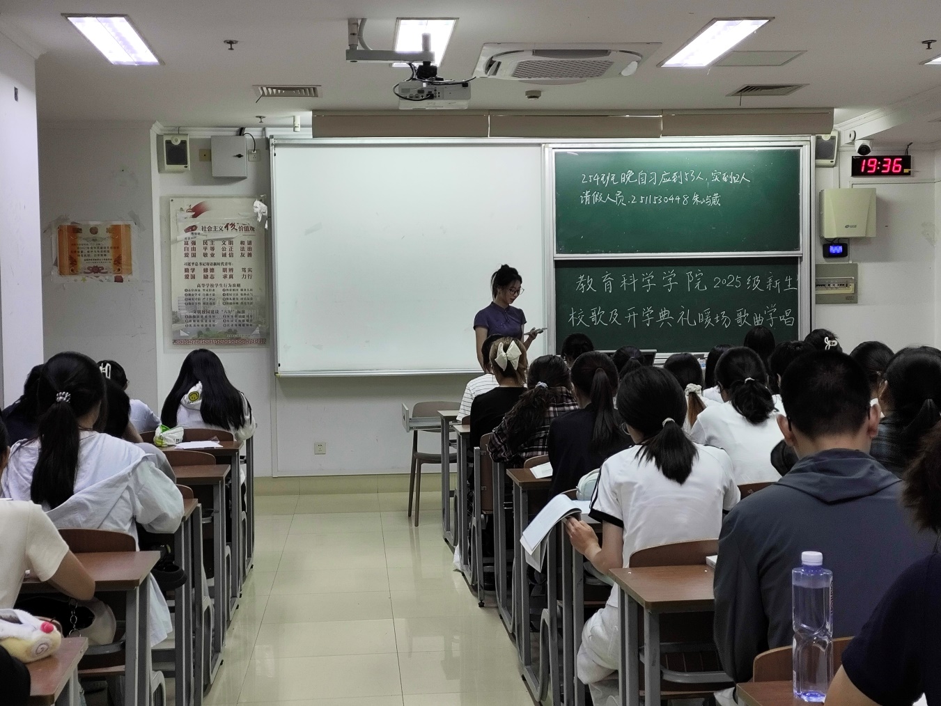 学唱过程中,各班助教在不同教室同步开展教学。他们首先讲解校歌的创作背景与文化内涵,帮助新生深入理解校歌承载的学校精神与历史底蕴;随后逐句教唱校歌及暖场歌曲,从节奏把握到情感表达,耐心细致地进行指导。新生们坐姿端正、神情专注,教室里回荡着整齐而富有朝气的歌声,展现出积极向上的精神风貌。