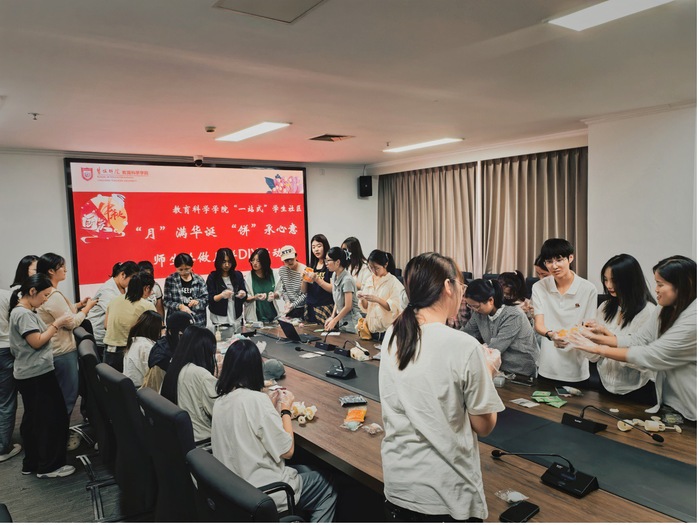 交流结束后,学院领导与新生共同参与中秋月饼制作活动。现场氛围温馨融洽,大家一同揉面团、包馅料、压模具,在动手实践中感受传统节日的文化魅力。制作间隙,领导们与新生亲切唠家常,详细询问假期出行与生活安排,特别对计划留校过节的员工表达了暖心关怀,让远离家乡的新生切实感受到学院大家庭的温暖。