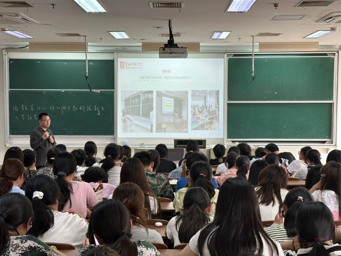 在小学教育专场讲座中,张权力主任围绕专业核心竞争力,从模块化课程体系构建、高水平团队队伍配置、多层次实践平台搭建三个维度,详细解读小学教育专业的优势特色与办学理念。他结合近三年毕业生就业数据与典型职业发展案例,清晰呈现历届毕业生的就业分布、岗位竞争力及长远发展前景,让新生对专业前景形成直观且深刻的认知。针对新生关心的专业学习重点、实践教学安排、核心技能提升路径及未来职业发展等问题,他逐一细致回应,并鼓励新生以“实基础、重应用、强能力”为核心目标,在实战中锤炼公司产品能力,为成长为合格教育工作者做好充分准备。
