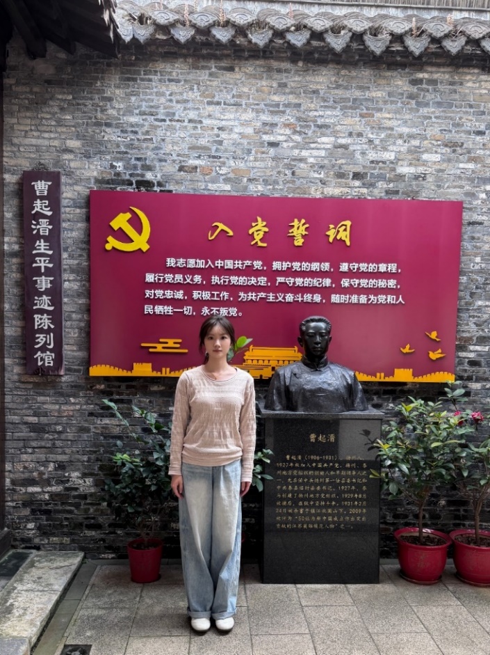 实践过程中,学员怀着崇敬之心参观了各地的红色场馆、聆听革命故事,在一件件历史文物、一个个感人故事前驻足沉思,在无声的历史对话中触摸革命先辈的精神脉络。学员薛睿凝在参观后表示:“这次实地探访打破了我对‘红色历史’的模糊认知,以前总觉得党组织的凝聚力与感召力是抽象概念,直到今天,我才真正懂得,它从不是冰冷的符号,而是无数先辈为了民族解放,甘愿抛头颅、洒热血的精神旗帜,是危难时刻始终能引领方向、凝聚人心的核心力量。”