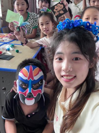 坐在返程的车上,窗外的稻田绿得晃眼。忽然想起第一堂课,我紧张地念着教案,而孩子们眼睛亮得像星星。原来支教的意义,从来不止于教会他们什么。我带着预设的课堂走进来,却被他们的天马行空推着往前走:是他们让脸谱有了银饰的花纹,让金箔成了草原的星光,让不同民族的故事,变成了可以一起笑、一起闹的日常。