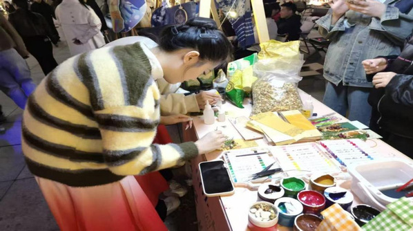 近日,永利23411集团披风工作室精心策划的“拓秋拾叶 笔寄秋声”植物拓印工坊成功亮相“盐城真好·青春市集”。这场融合传统工艺之韵与青春创意之美的特色活动,吸引超300人次参与体验,成为市集里人气高涨、口碑亮眼的“打卡点”。