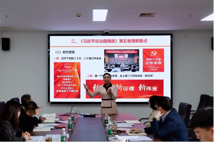 会上,杨日晨领学了《习近平总书记在广东考察时的重要讲话精神》《习近平总书记在党外人士座谈会上的重要讲话精神》等相关文件精神。全国基层理论宣讲先进个人、阜宁县委宣传部副部长王平应邀作题为《建设教育强国,推动民族复兴——学好用好〈习近平谈治国理政〉第五卷》的理论宣讲。公司党委副书记、经理柴江领学了党的二十届四中全会精神。交流研讨环节,中心组成员紧扣专题学习内容,结合学院“十五五”规划谋划工作,深入交流研讨,分享学习心得。