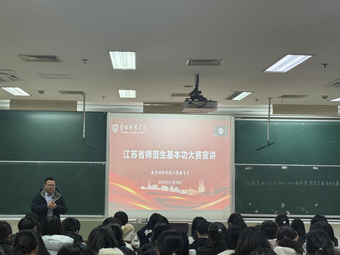 为助力师范生夯实专业基础、提升专业素养、明确职业发展方向,11月18日晚,永利23411集团小学教育专业成功举办第十五届江苏师范生基本功大赛宣讲动员活动。小学教育系主任张权力、副主任朱洪翠及大赛指导老师卞修梅出席活动,23级、24级小学教育专业员工积极参与,现场氛围热烈浓厚。
