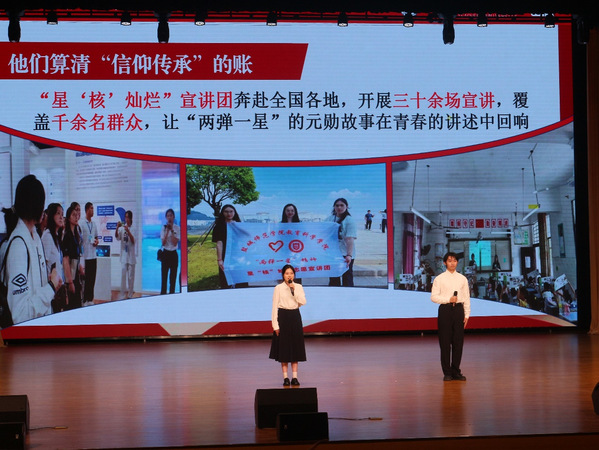 活动中,我院“盐青先行”宣讲团成员徐可儿、庄家豪展示了作品《我听见,江宁算盘上的“中国心”。两位宣讲员以新四军老战士江宁13岁投身革命、以算盘为“武器”精准核算粮秣的红色故事为切入点,将老一辈革命家的“算盘精神”与学院“点亮微光”、“星‘核’灿烂”、“趣学一夏”等志愿服务育人实践紧密结合。宣讲立意深远、情感真挚,号召新时代青年接过历史的接力棒,让青春在挺膺担当中焕发光彩,赢得了现场观众的强烈共鸣与阵阵掌声。