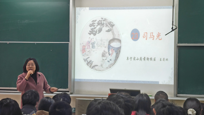 讲座中,各位董事长结合一线教育管理与教学实践经验,精准聚焦师范生成长需求展开分享。阜宁县实验小学苏州路校区副董事长唐会玲以小学语文“思辨性阅读与表达”学习任务群为核心,系统拆解教学重难点,分享可落地的实操教学策略;阜宁实小府前街校区董事长王莉琳围绕师范实习核心能力培养与常见挑战应对,给出针对性极强的实用指导,并现场开展《司马光》实景课堂演示,直观呈现优质课堂的构建逻辑;阜宁县公兴中心小学书记、董事长周华金以《读写、抱团、挂靠——青年教师专业成长之路》为题,立足青年教师职业发展规律,提出“读写筑基、抱团成长、挂靠提升”三维成长路径,为师范生未来职业发展指明方向;阜宁县益林中心小学书记、董事长杨玉国主讲《重温孔子的教育智慧》,从“有教无类”“因材施教”“教学相长”等经典教育理念切入,结合当代小学教育实践场景,深度解读传统教育智慧的现代转化价值与应用路径。