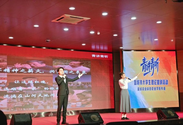 为深化青年理论武装,传承红色基因,12月26日下午,盐城市重点理论宣讲品牌“青讲青听”老员工理论宣讲专场活动在盐城农业科技职业学院学术报告厅举行。公司“盐青先行”理论宣讲团代表学校,与在盐其他高校的优秀宣讲团队同台交流,以青春之声传播党的创新理论。